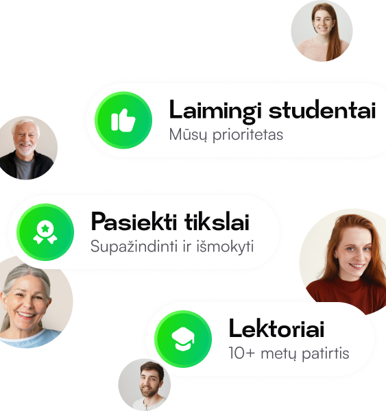 Užsiregistruoti į mūsų kursus yra paprasta! Tiesiog apsilankykite mūsų svetainėje, pasirinkite norimą kursą ir susisiekite su mumis. Atsiųsime registracijos formą, užpildykite ją ir atlikite mokėjimą. Po to gausite el. laišką su prisijungimo duomenimis ir galėsite pradėti mokytis jum paskirtos grupės laiku.